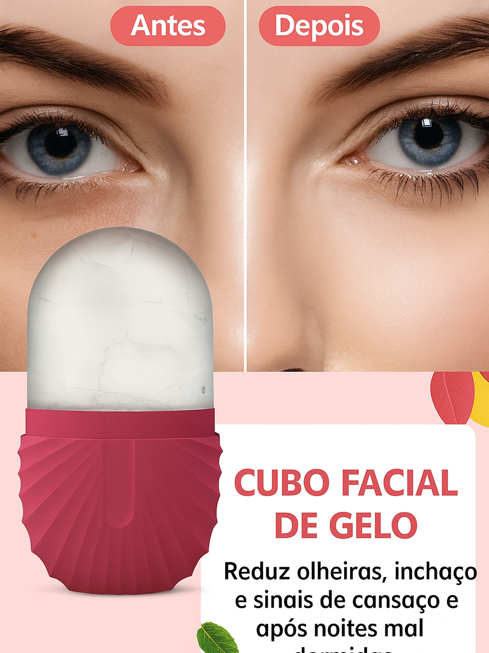 ❄️ Reduz inchaço e olheiras